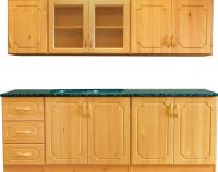 Anyaga: A szekrénytest fenyő utánzatú laminált bútorlapból készül. Az ajtó tömör fenyő, díszmarással.